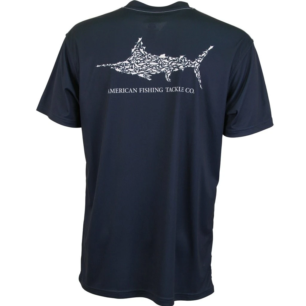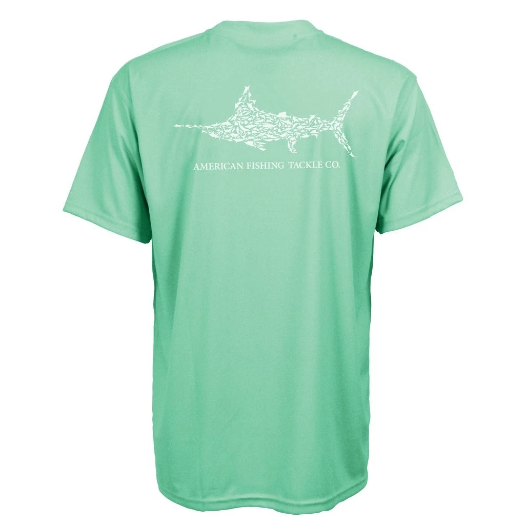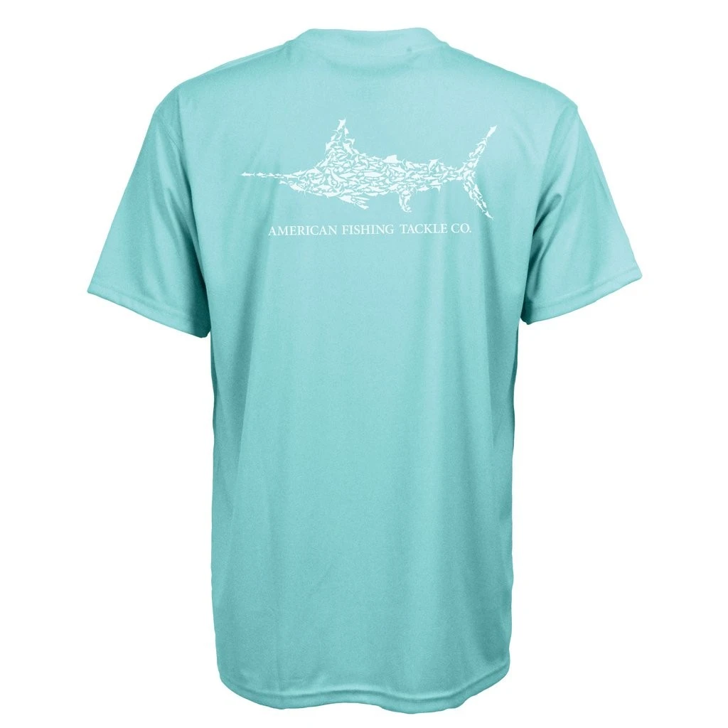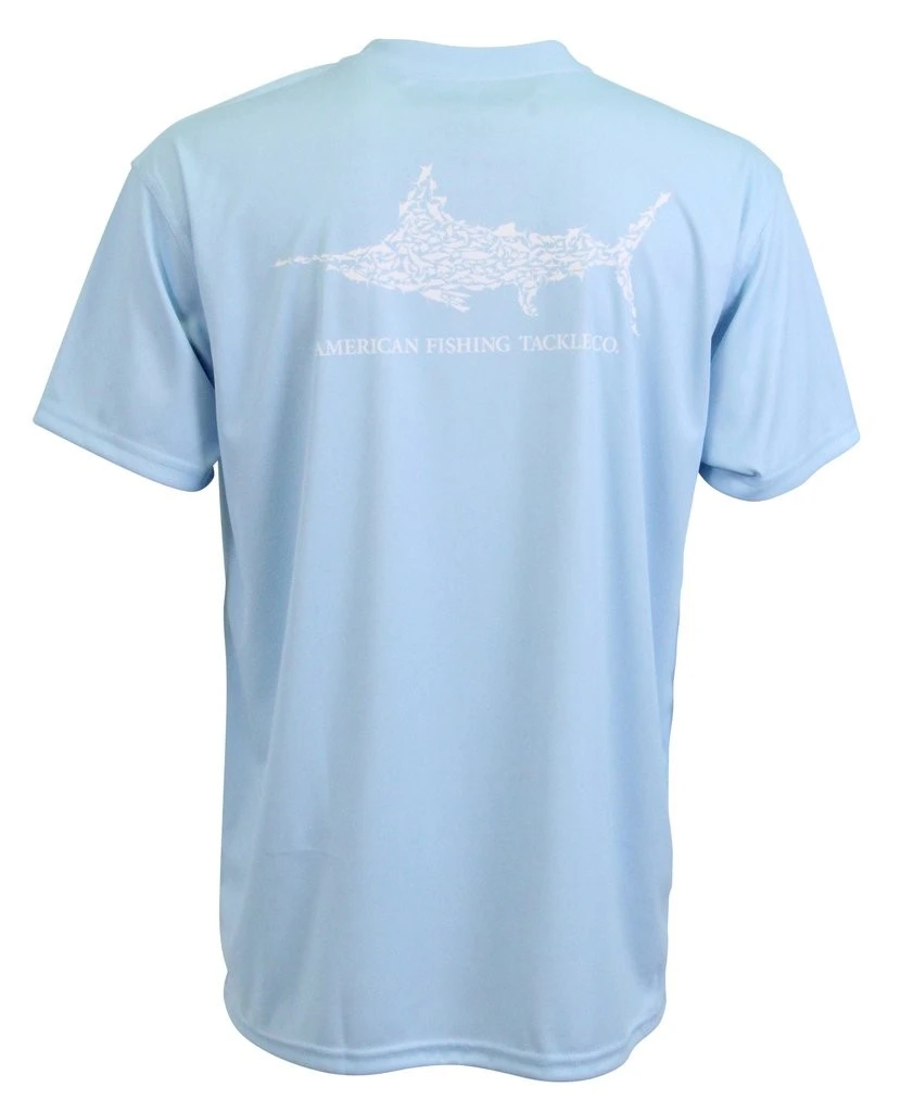 The AFTCO Jigfish short sleeve fishing sun shirt is one of our top performance tees. This jig fishing t-shirt protects from the harmful effects of the sun’s UV rays and blocks more than 98% of UV rays. The Jigfish tee shirt is made of 100% breathable polyester stretch fabric called QuickDry. The Jig fishing sun protection shirt for men features the awesome AFTCO Marlin Puzzle logo on the top back, and Fish logo on chest in cool colors to keep you dry in sweaty conditions.