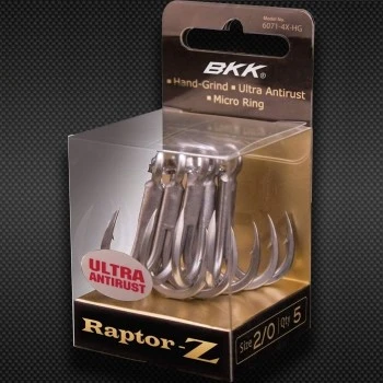 ~ Innovative sealing technology is used to minimize the diameter of Raptor Z hook eye to get through split rings easily while keeping the superior strength of the hook