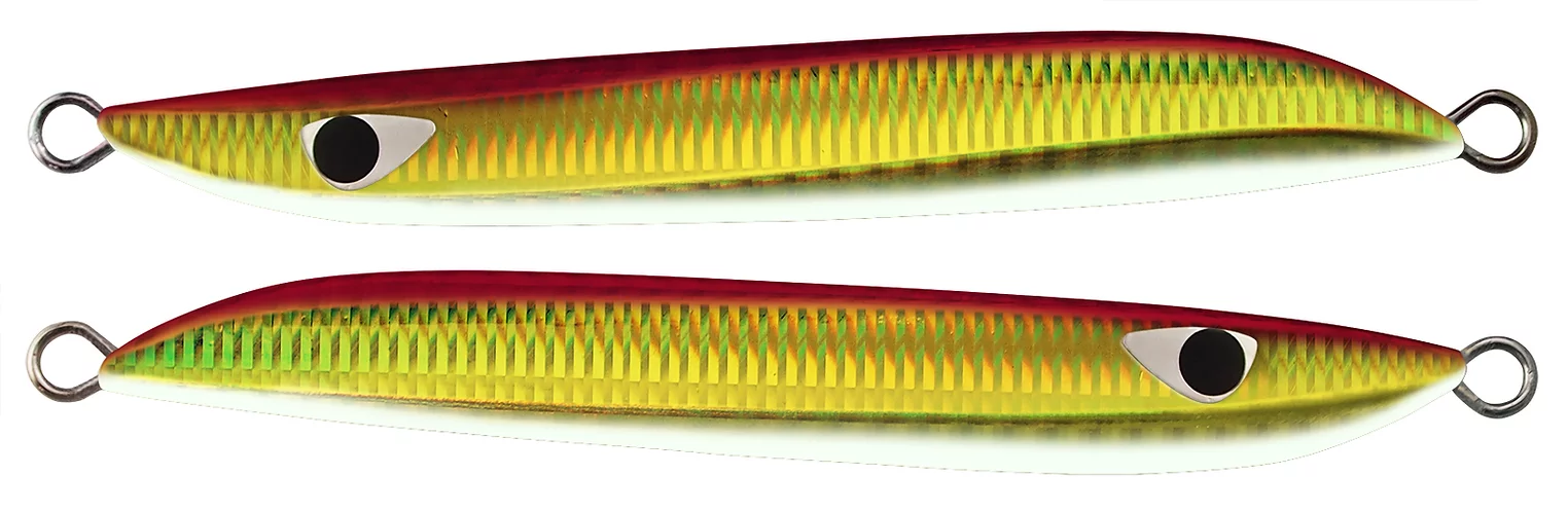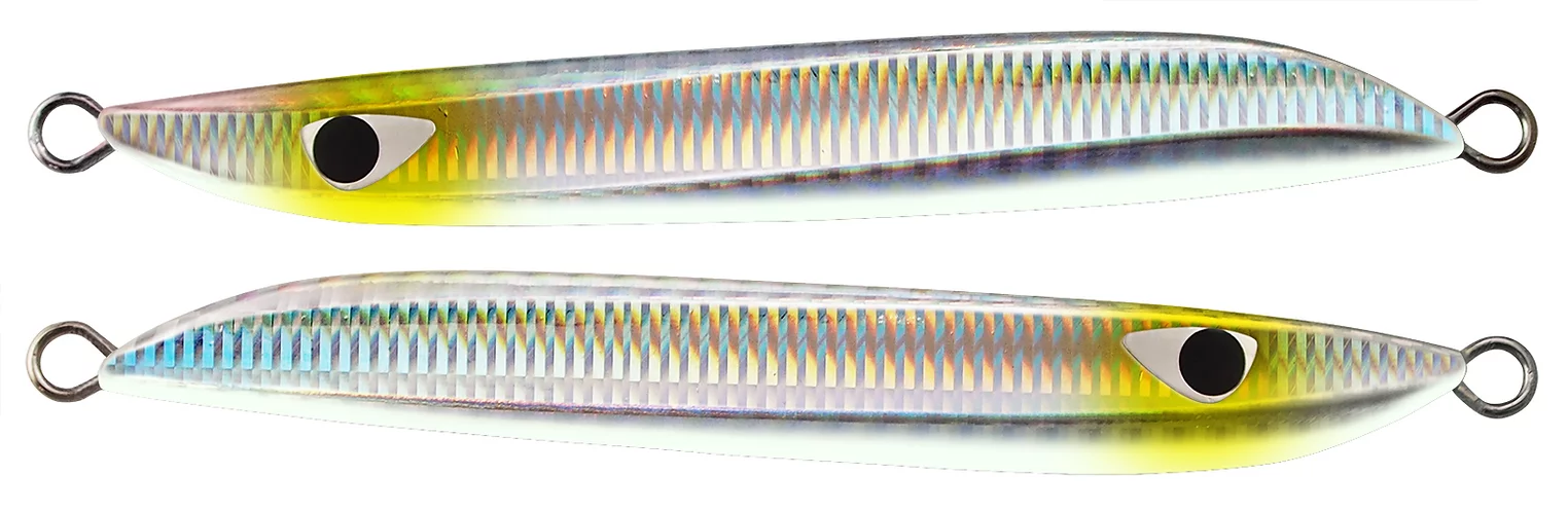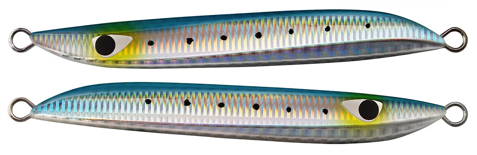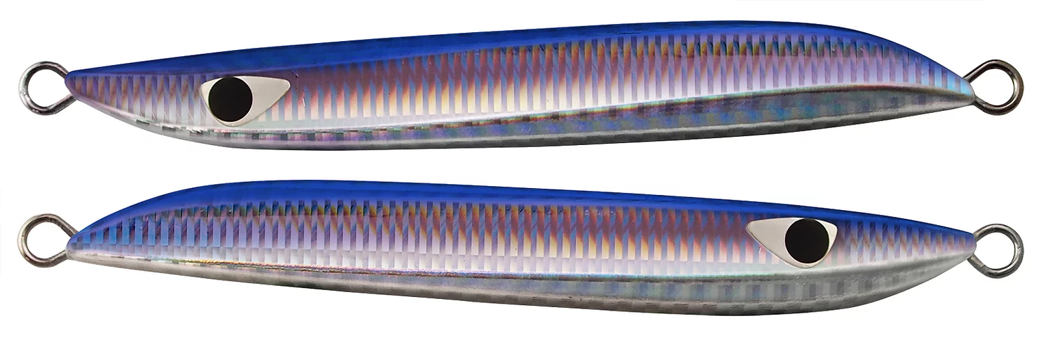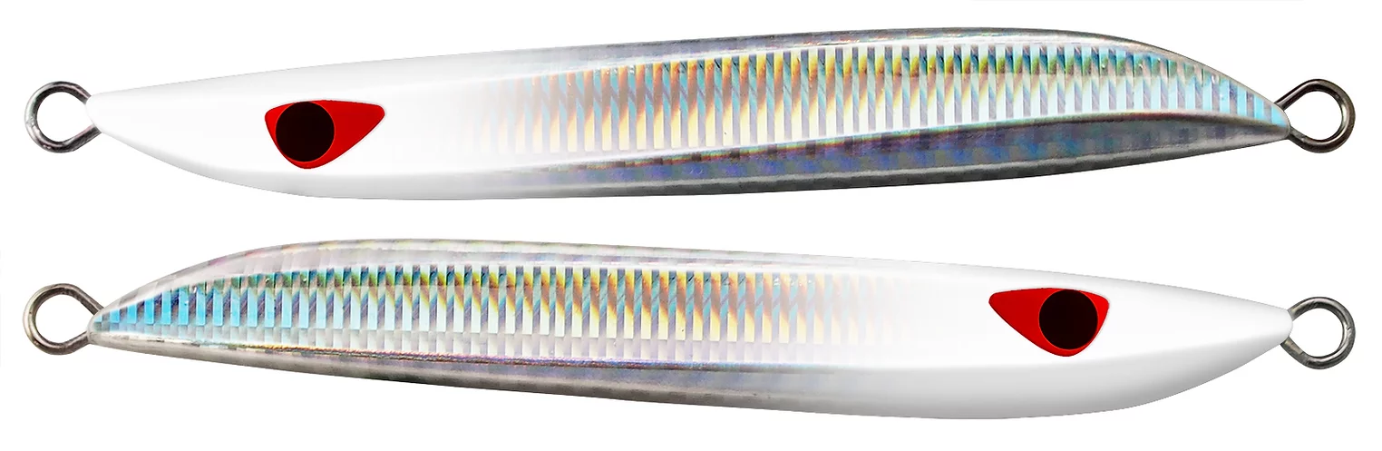 MB One is a metal jig that is highly effective in situations where small baits such as sand eel densely packed under the surface of the water, and inviting inside a bait ball under the surface of the water. The perfectly symmetrical form, which causes the same action for both jerk and fall, makes it easy to cut in the direction of travel in both raising and lowering, and can be invited with a certain slide width in a group of baits. The four sides that make each appearance have a continuous flickering and blinking appeal when flattened, and because they have a volume for their length, they are thin and heavy, and are a small form that is effective in capturing small baits.