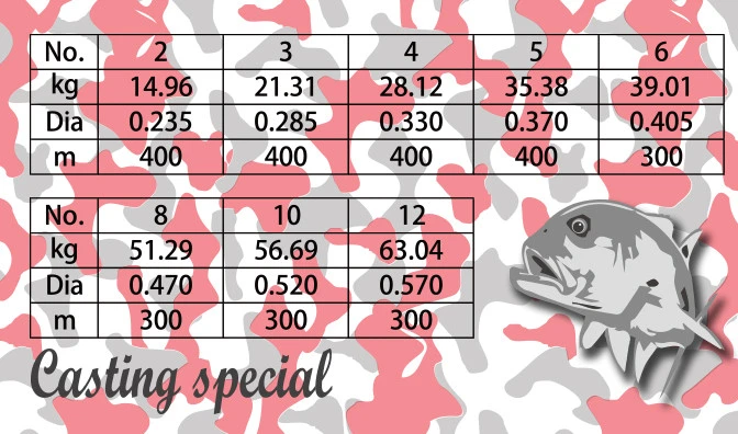 | PE2 | 14.96kg | 0.235mm | 400m |