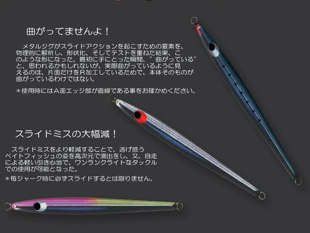 - Long and slim jig resembling bait